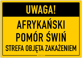 „UWAGA! STREFA OBJĘTA ZAKAŻENIEM AFRYKAŃSKIM POMOREM ŚWIŃ U DZIKÓW”.